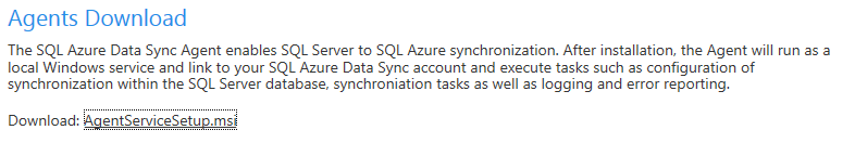 - Descarga el servicio, “AgentServiceSetup.msi” e instalalo en local para la sincronización.