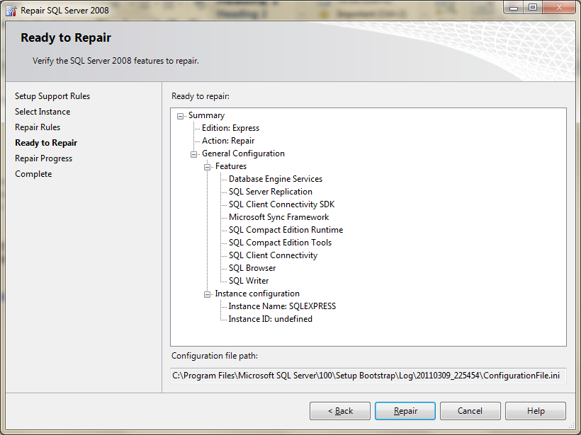 Despues de buscar en internet y seguir algunos pasos, como los de este enlace, “http://social.msdn.microsoft.com/Forums/en/lightswitchgeneral/thread/8a67fc8b-1221-4764-ab84-64a711fae4b2”, mi problema continua asi, que lo siguiente es “REPARAR” el SQL Server: