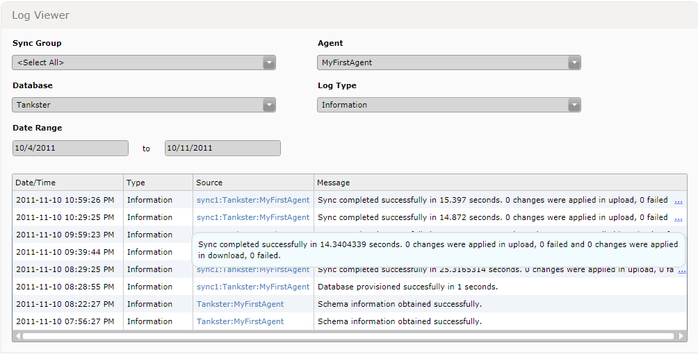También he de decir, que la consulta de logs (Log Viewer) ha mejorado bastante con respecto a su predecesor, ahora permite búsquedas por filtros (Sync Group, Agent, Database, Log Type y Date range):