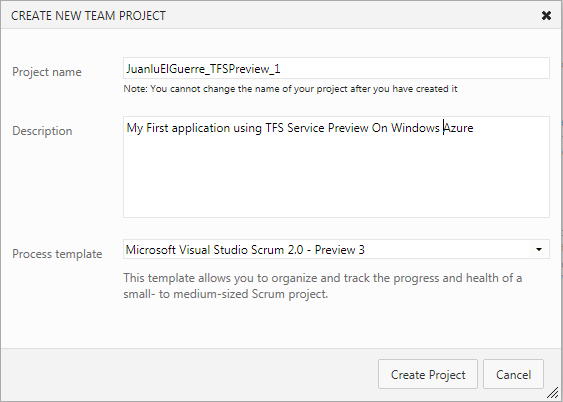 Ya tengo mi TFS particular en Windows Azure. Aquí os dejo algunos pasos para que veáis como funciona: