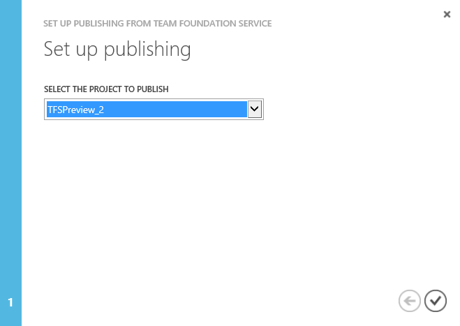 - Selecciona el proyecto de TFS a asociar al “Azure Web Site”