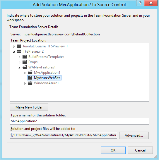 - Ahora que estas conectado, añade la solucion a TFS como lo haces normalmente.