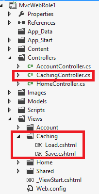 Creamos un Controller y las vistas adecuadas para el tratamiento de la Caché además de incluir una nueva opción de menú “Caching” en “_Layout.cshtml”