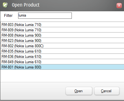 4) File –> “Open Product” y buscamos nuestro teléfono.