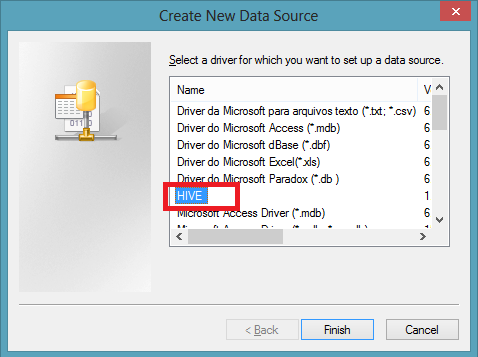 3) Configuramos la conexión del ODBC de Hive con Hadoop.