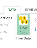5) Accedemos al menú DATA y, concretamente, al ribbon “Hive Pane” el cual nos mostrará el Tool Box “Hive Query” y donde seleccionaremos la conexión creada en el paso 3.
