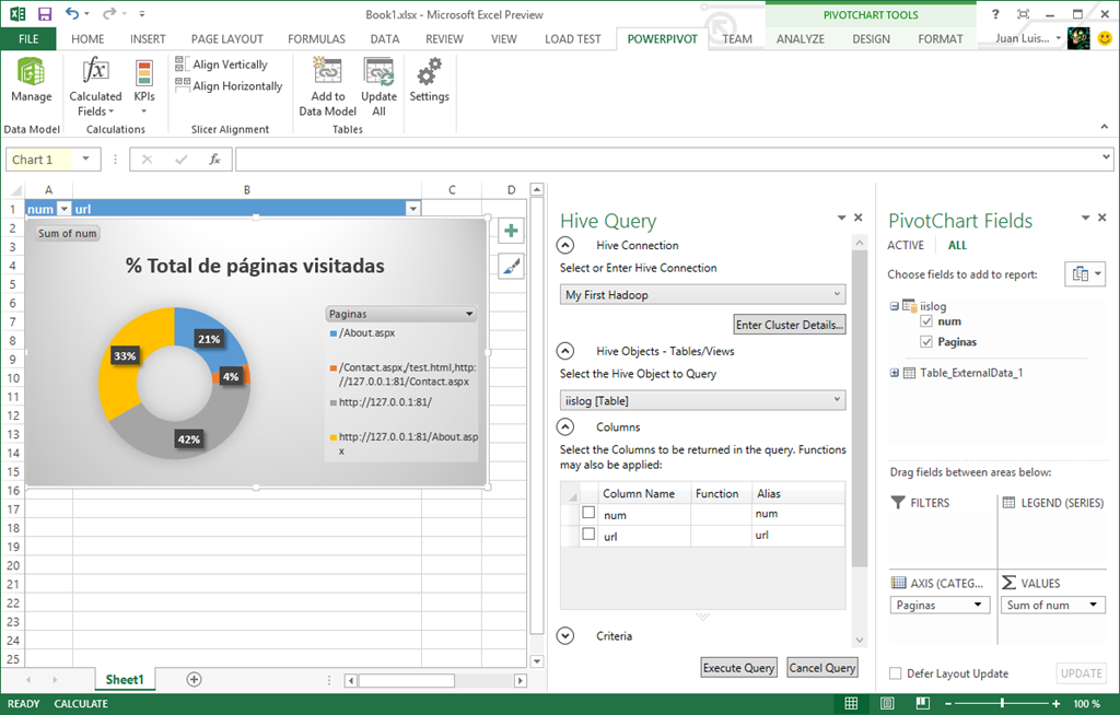 8) Seguimos los pasos de Wizard y en esta ocasión todo es correcto. ¡Esperemos que se trate de bug del Hive para Excel o incluso de Office 2013 Preview, como es mi caso!