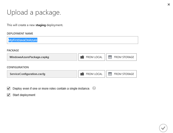 Si el error persiste, hacemos el despliegue manual (a partir de los ficheros “.cspkg” y “.cscfg” generados desde la opción “Build Cloud Package for Windows Azure”) desde el portal de Windows Azure, bien desde local o bien desde el storage, donde previamente habremos realizado la subida, por ejemplo con “Azure Storage Explorer”.