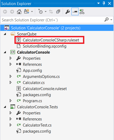 2.- Incluir en nuestra solución un fichero Demo.RuleSet.
