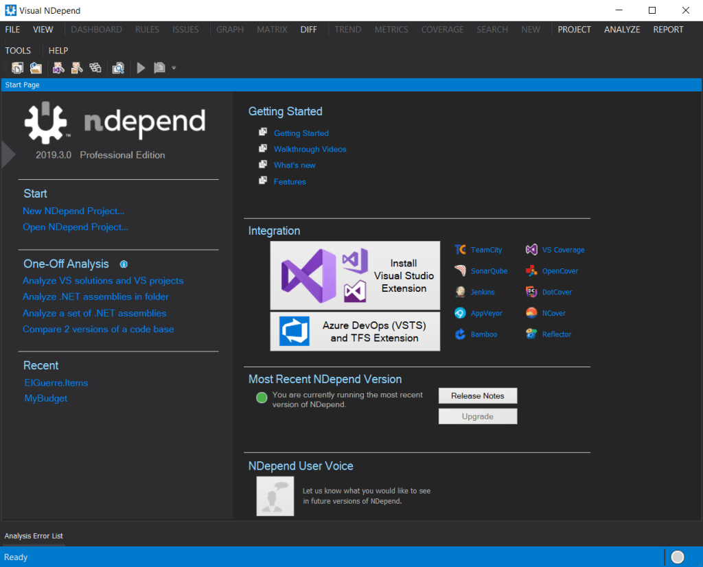 - Getting Started: https://www.ndepend.com/docs/getting-started-with-ndepend