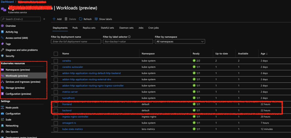 La versión 1.19.3 de AKS ya no permite lanzar el Dasboard desde linea de comando con el CLI «AZ». Ha quedado deprecado y, en su lugar, es el Portal de Azure quien nos presenta esta información. Eso si, por el momento en modo «Preview».