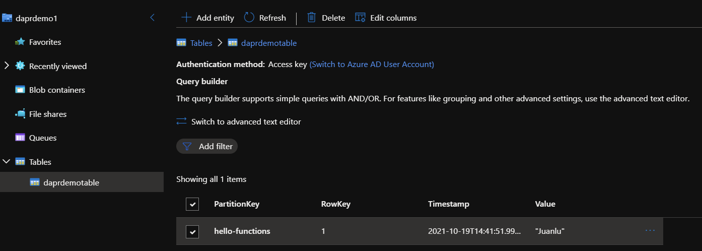 value: "Dapr using azure functions"