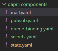 Una vez completado estos puntos, ya tenemos listo todos los componentes Dapr. ¡ De los que no hemos hablado, recueda que tienes todo su detalle en github y ya lo comentamos en posts antriores!: