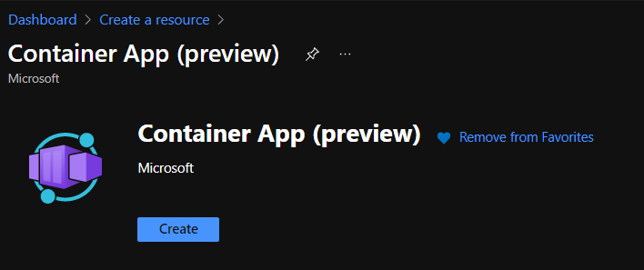 Buscamos en el Portal «Container App» y puslamos «Create».