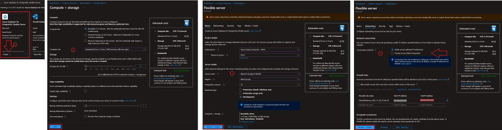 Como no tenemos aun un Flexible Server, lo creamos teniendo en cuenta estos datos y pasos: