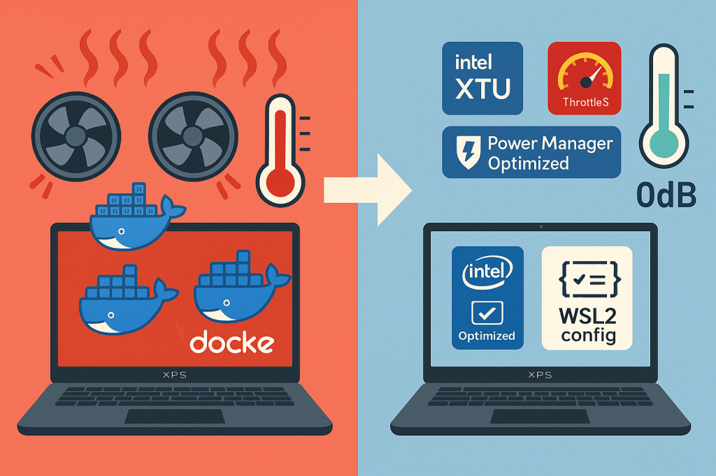 How I cooled a Dell XPS 15, cut fan noise & temps with BIOS + power‑plan tweaks—plus optional Docker & WSL2 tuning. Copy‑paste ready for WordPress.